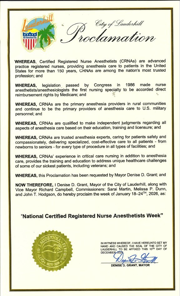 In celebration of National CRNA Week, January 18 – 24, 2026, FANA is pleased to share the following proclamations from counties and cities across the state of Florida.